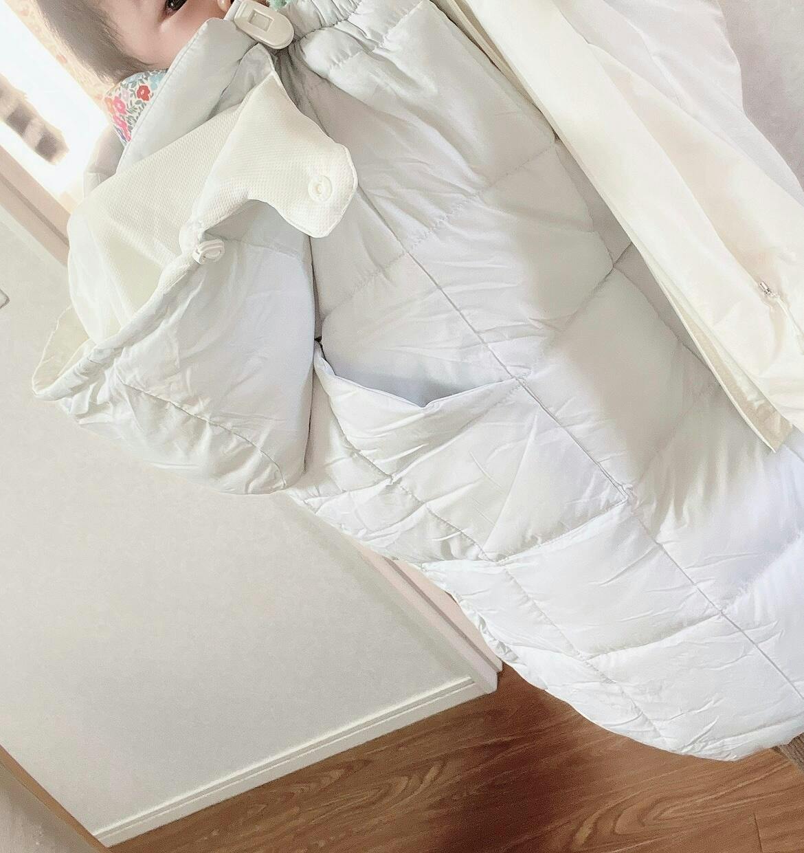 軽くて暖かいのはもちろん、ベビーカー装着時に気になっていたフードも取り外し可能なのがまた嬉しいです。